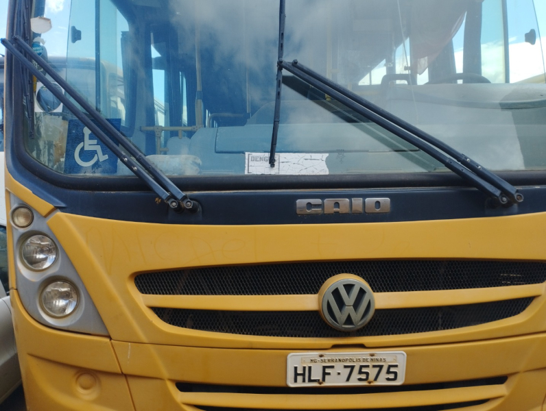 Um veículo ônibus VW 15.190 Caio - 60 lugares – cor: amarela – ano: 2011/2012 – Placa: HLF-7575 – Chassi: 9532882W2CR213982