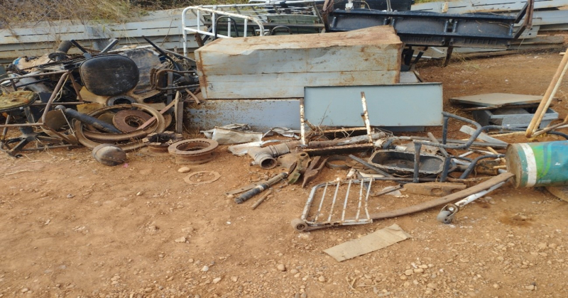 Um lote com sucata de ferro e peças usadas.
