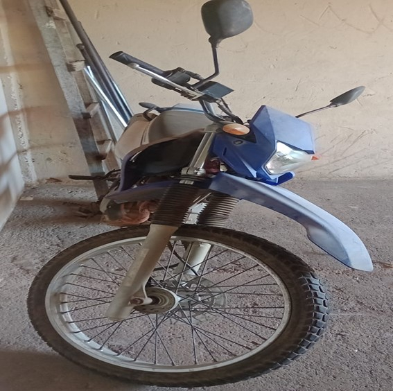 Uma motocicleta Yamaha XTZ 125 – ano: 2013/2014 Placa: OWS-2A62 – chassi: 9C6KE1260E0033036, cor azul.