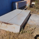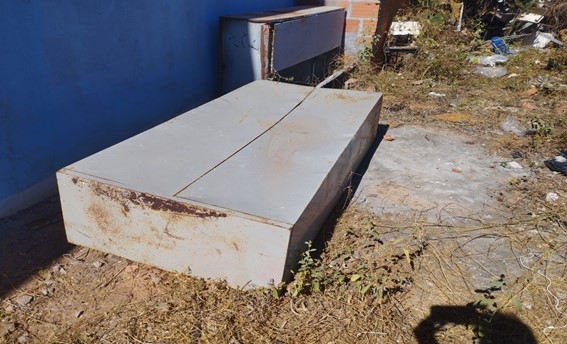 Lote com 02 armários de aço (sucata) – Cadeiras e Mesas escolares (sucata), aproximadamente 80 peças.